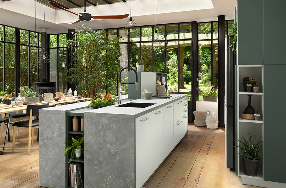 Bring an edge of character into your home with Schmidt’s industrial-inspired kitchen designs. This look combines raw textures and bold finishes, where exposed brick, dark cabinetry, and open shelving create a space that feels both authentic and contemporary. Every detail is carefully considered, from the practical storage solutions to the statement shelving units that double as design features. Perfect for those who want to make a bold statement while keeping functionality at the heart of their home, it’s a design that blends warmth, durability, and modern flair in equal measure.